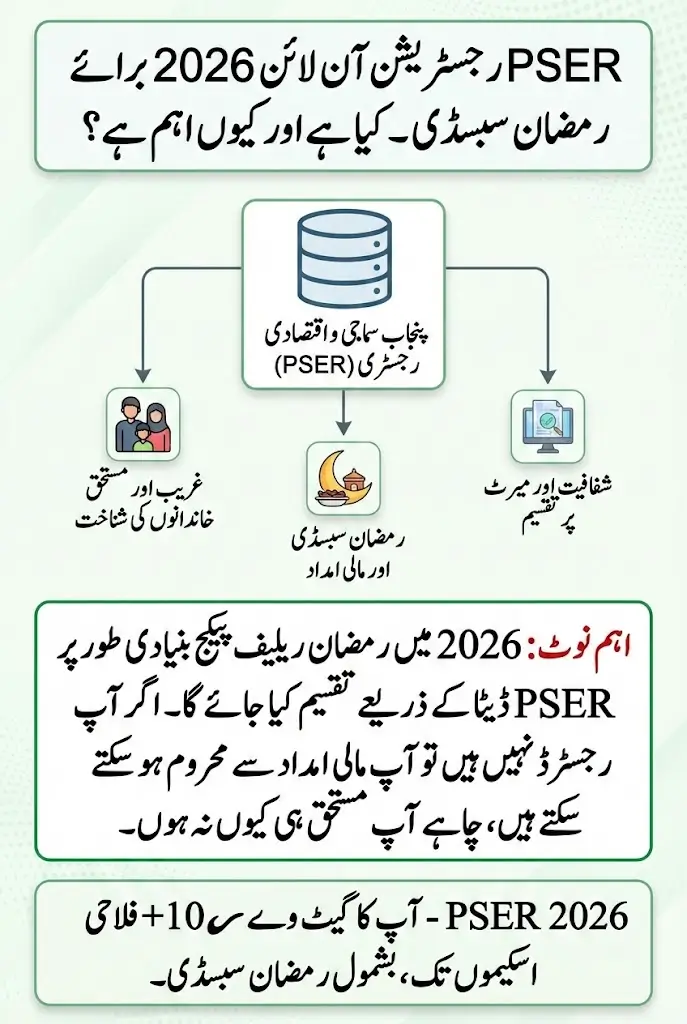 This detailed guide explains everything about PSER Registration Online 2026 for Ramzan Subsidy, including eligibility criteria, step-by-step registration process, required information, verification system, and financial assistance details in simple and easy language.