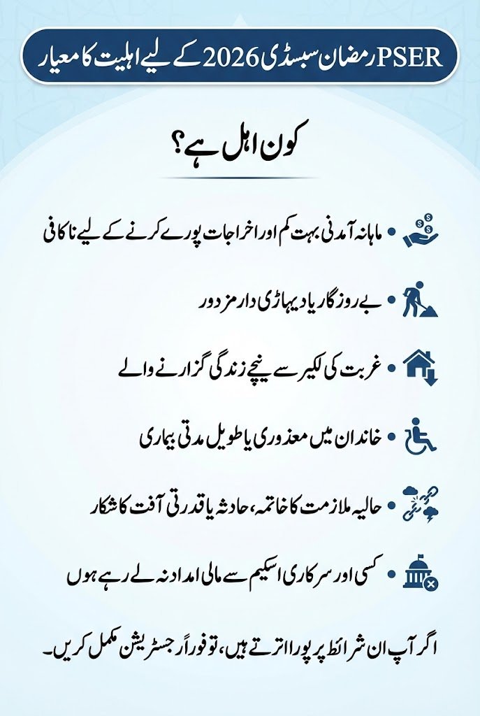 Who Is Eligible for PSER Ramzan Subsidy 2026